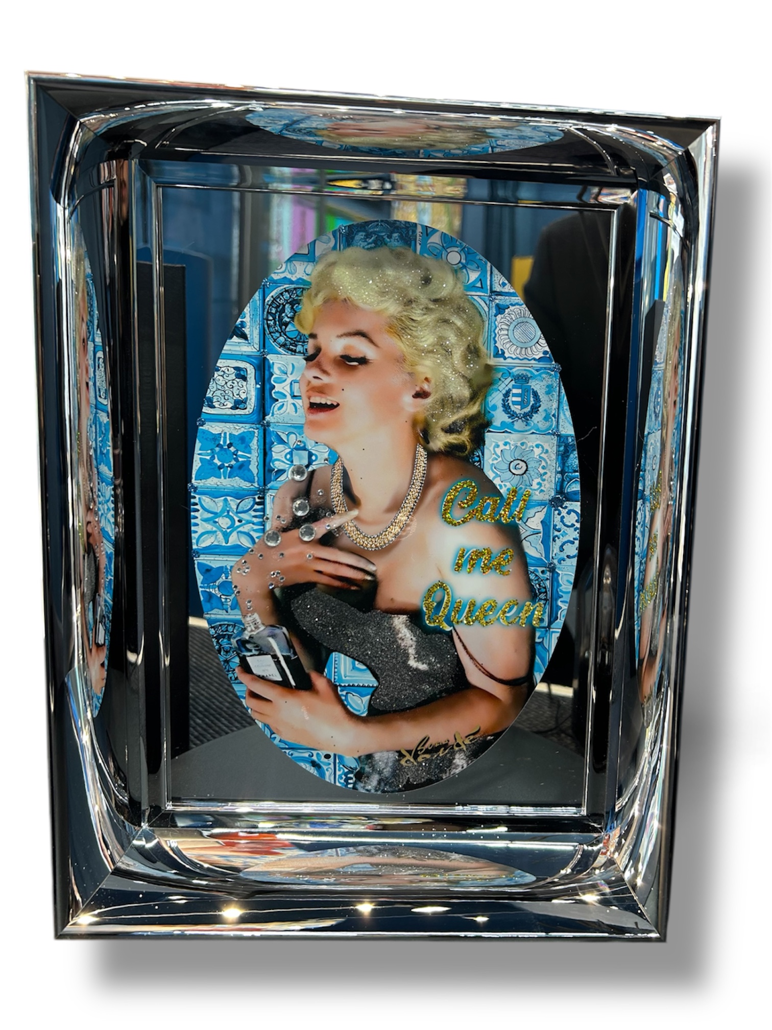 Mixed media on mirror, gold leaf, diamond dust, crystals